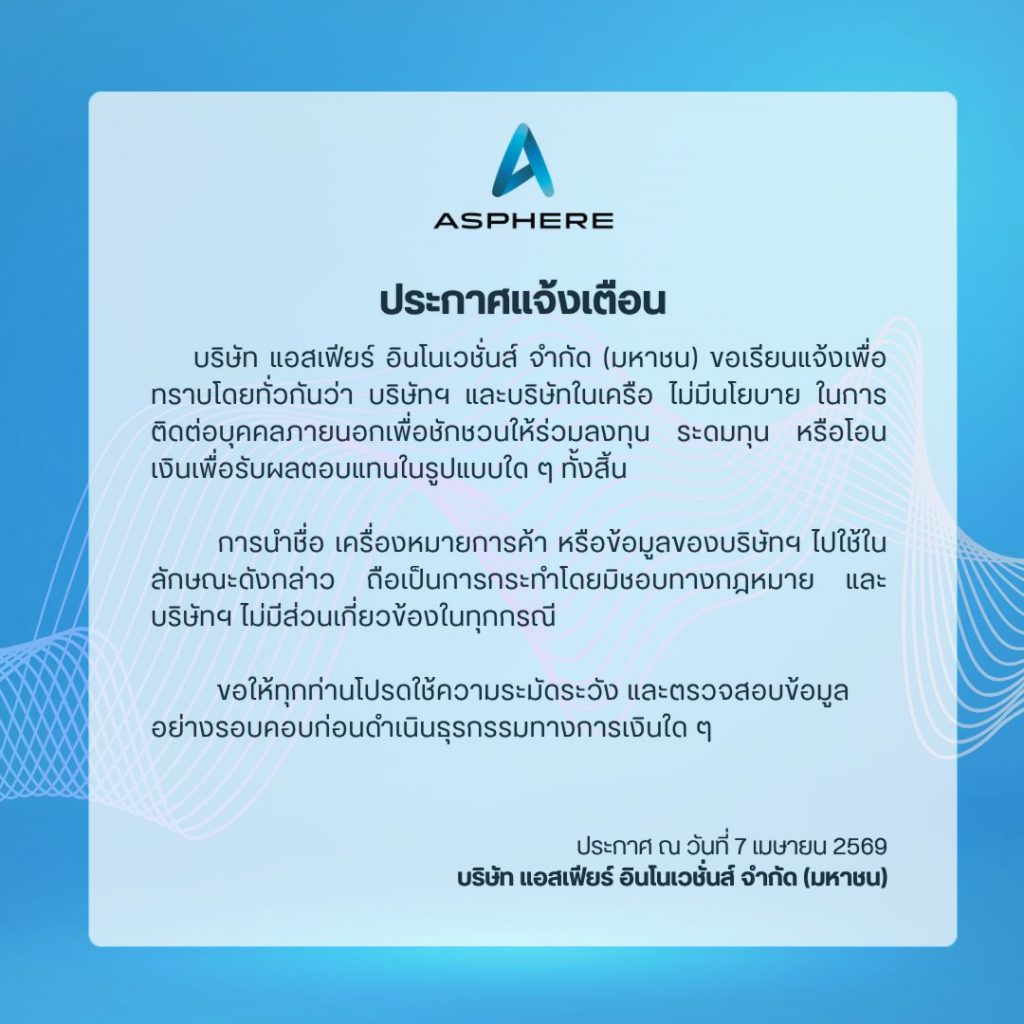 ประกาศแจ้งเตือน: การแอบอ้างชื่อบริษัทเพื่อชักชวนให้ร่วมลงทุน